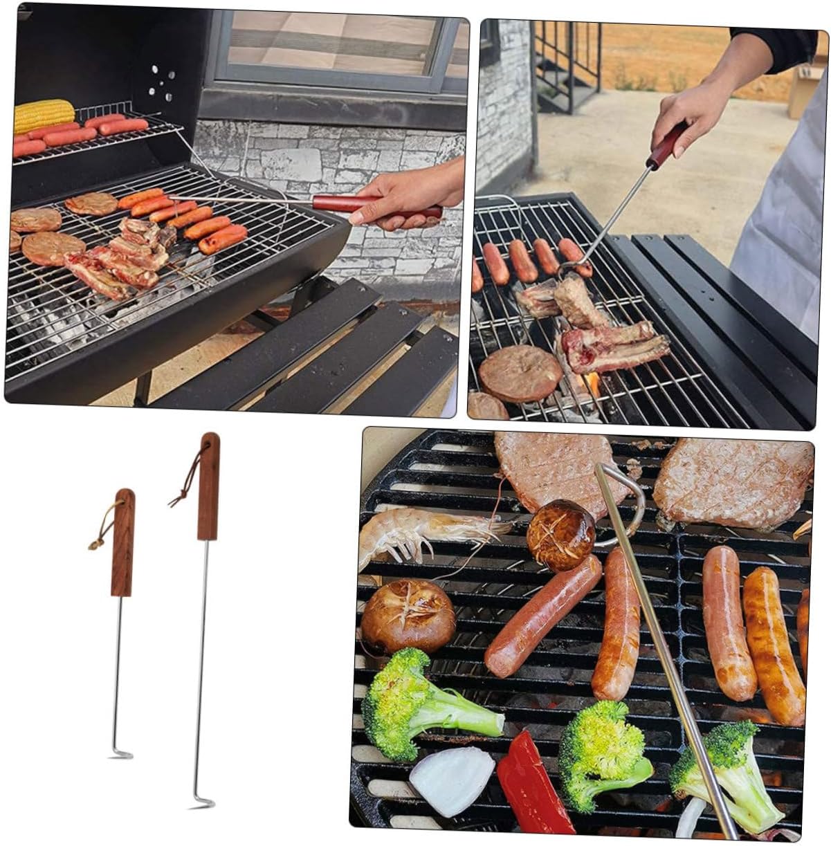 Package List 8 x Meat Hooks Characteristics -Material:Stainless Steel, Wood hanging -Color:Brown meat hook -Size:44.00X3.70X2.00cm/17.29X1.45X0.79in hooks -Size:31.80X3.70X2.00cm/12.50X1.45X0.79in outdoor - Owning the strong wear and break resistance ability, the meat flipper hook very practical, with excellent texture food turner. - Great hanging hook for meat processing, chef, hunters, meat hanging, drying and smoking meat flipper. - Necessary tool for hunters, restaurant kitchens, grocery stores, and other food service settings food flipper hooks. - The handle is long, which makes it anti-scald for grilling, and with a comfortable grip, easy to operate barbecue. - Meat Hook has a simple design, but very practical in use, giving you a handle meat hook.Goods Informationmeat food turner hook Suitable for use in homes, barbecue shops and other places, convenient, fast and safe.heavy duty lifting hooks The stainless steel Meat Hook is used for meat processing or drying.food flipper turner With meat hook, you can hook meat more and conveniently