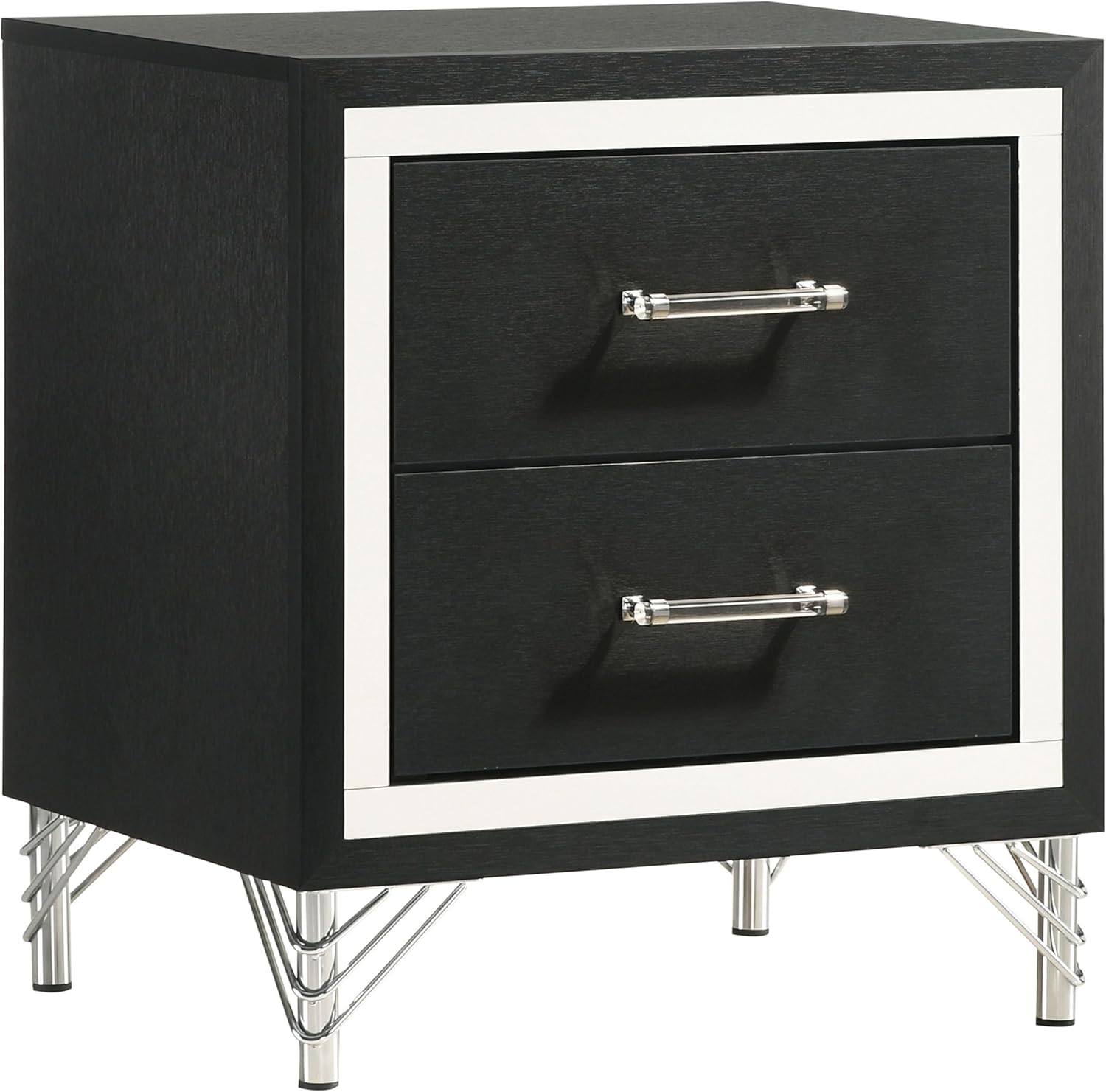 Enhance the chic design of this white nightstand featuring elegant gold trim, a bold two-tone design, and a clean boxy frame for a sophisticated bedroom upgrade. Bring functionality to your space with a 2-drawer nightstand offering 2 drawers, versatile bedside storage, and convenient hidden storage. Add lasting quality with durable engineered wood, a strong wood frame, and premium wood construction for dependable use. Enhance your décor with sleek bar pulls, stylish hairpin style legs, and timeless modern classic style that complement any bedroom furniture collection.